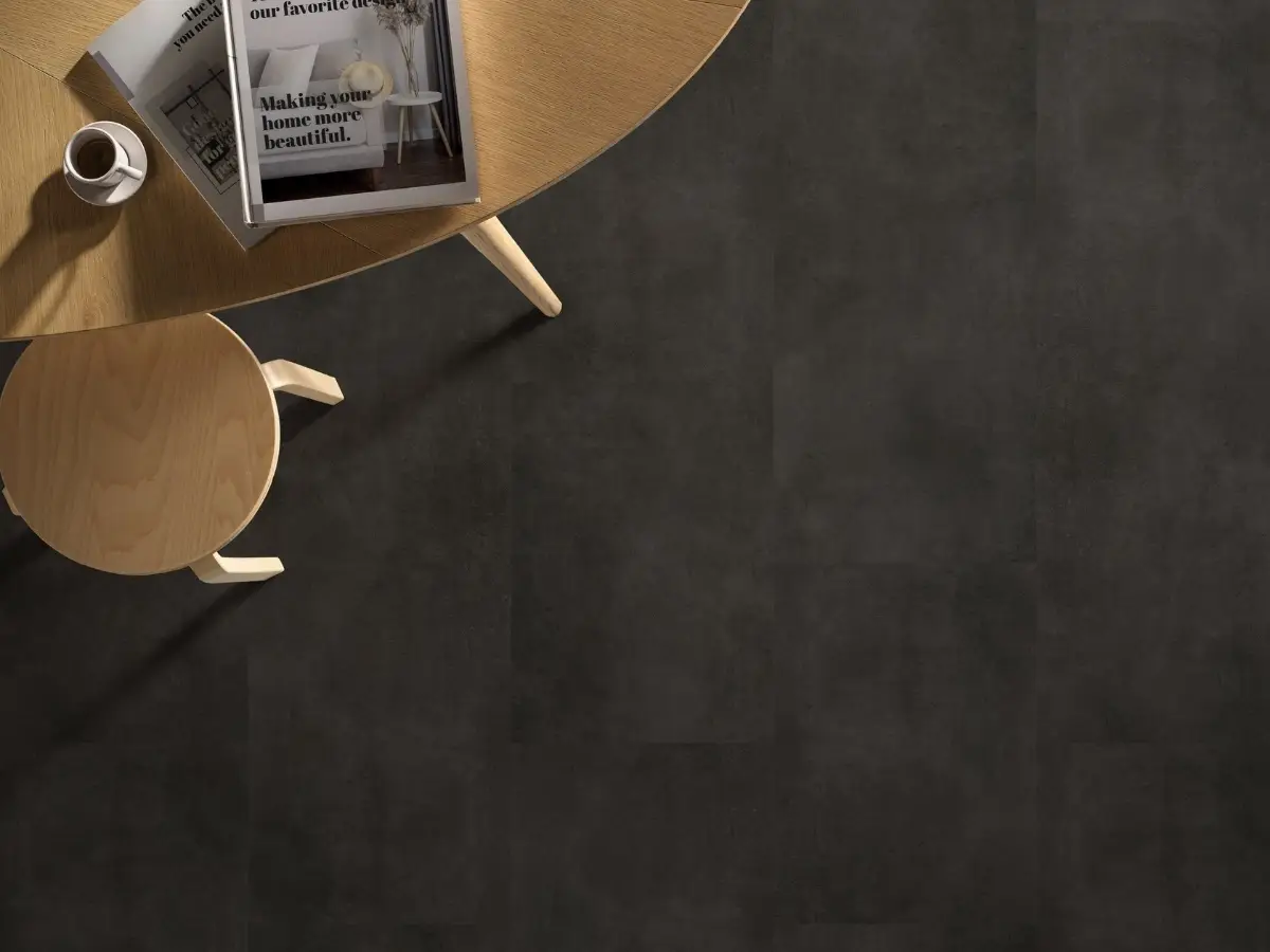 Der Designboden Stein Jura Anthrazit bringt mit seiner ausdrucksstarken, dunklen Steinoptik in Anthrazit eine klare Designaussage in moderne Wohn- und Objektbereiche. Die authentische Oberflächenstruktur unterstreicht die hochwertige Wirkung – ideal für elegante, minimalistische oder industrielle Raumkonzepte.