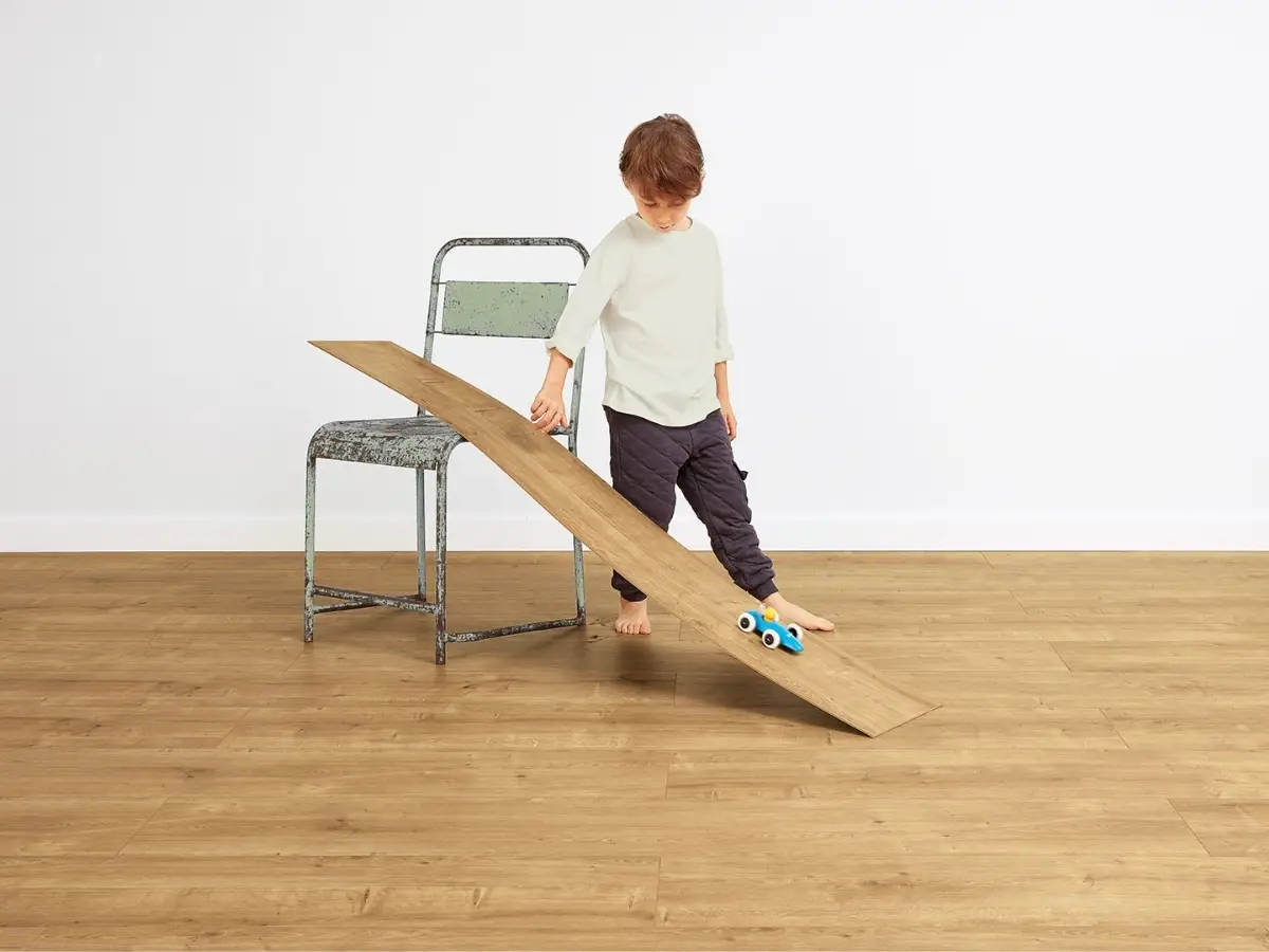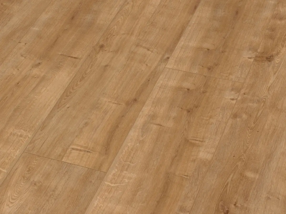 Bioboden mit Klicksystem im Eiche-Dekor – wohngesund, emissionsfrei, pflegeleicht und besonders strapazierfähig im XL-Format.