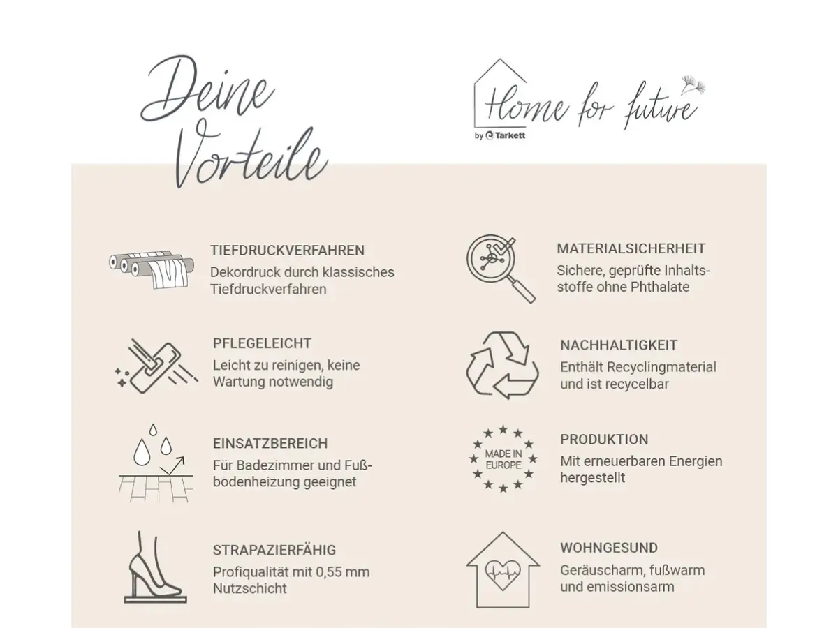 | Warmwasser‑Fußbodenheizung geeignet | ja (max. 27 °C Oberfläche) |