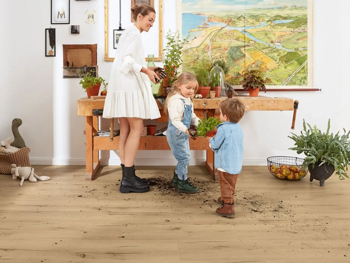 Bioboden Eiche Piero – wohngesunde, strapazierfähige Klickdiele aus natürlichen Rohstoffen, emissionsfrei und pflegeleicht.