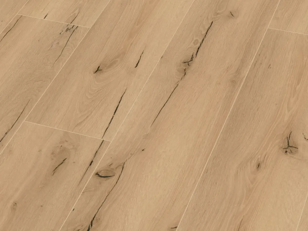 Das großformatige Dielenmaß (1845 × 237 mm) kombiniert mit einem praktischen Clicksystem auf HDF-Träger ermöglicht eine schnelle, schwimmende Verlegung. Die strukturierte Holzoptik im Eiche-Dekor mit 4-seitiger Fase schafft ein natürliches und hochwertiges Bodenbild – auch in Feuchträumen, Küchen oder Kinderzimmern.