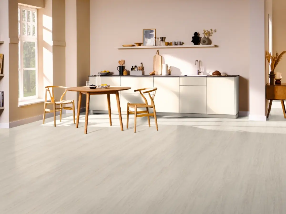 Das EGGER Laminat EL2026 „Victoria Eiche weiß“ kombiniert helles Eichendekor im Großformat mit 24 h Wasserresistenz und Nutzklasse 32 – ideal für Wohnräume und Feuchträume.