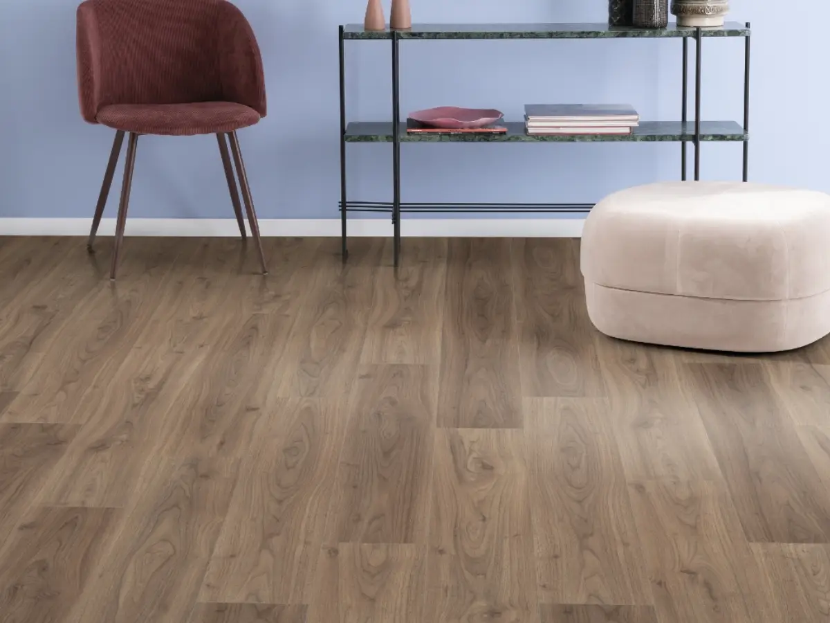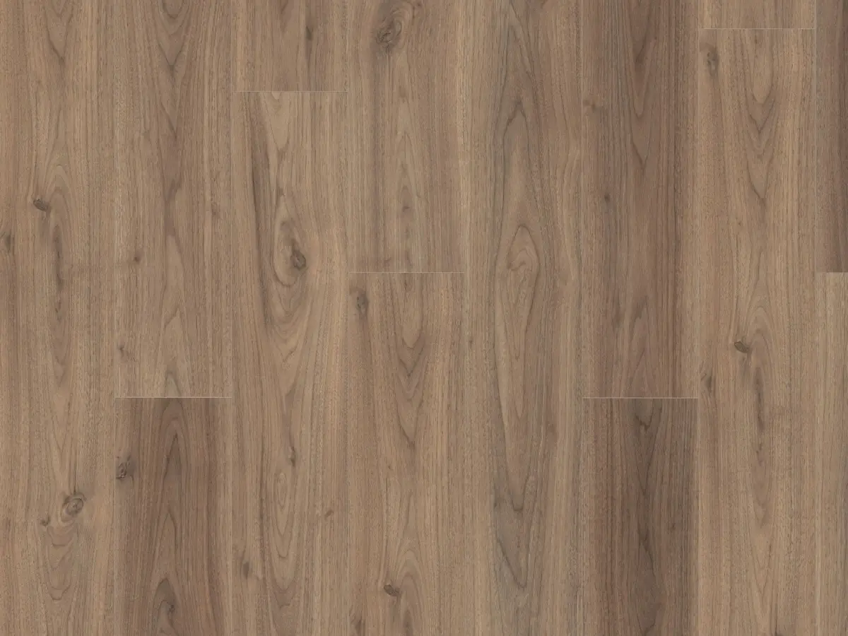 Das EGGER Laminat EL2070 „Langley Nussbaum hell“ überzeugt mit heller Nussbaumoptik, 24 h Wasserresistenz, klassischem Format und Nutzungsklasse 32.