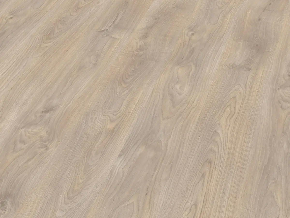 EGGER Laminat EL2637 „Belfort Eiche silber“ kombiniert moderne Eichenoptik mit Nutzungsklasse 32, 4-V-Fuge und Fußbodenheizungs-Eignung.