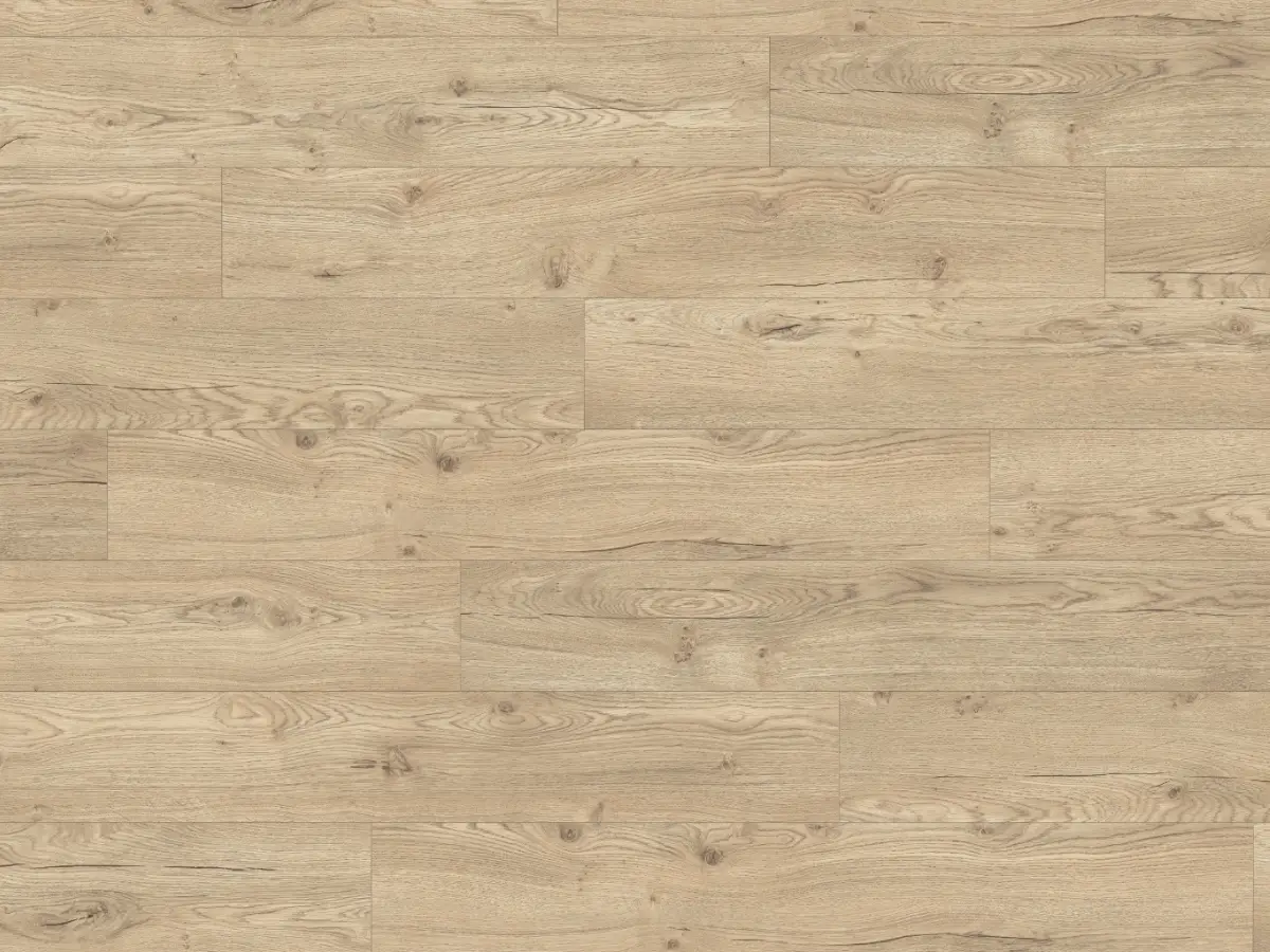 EGGER Laminat EL2855 „Olchon Eiche sandbeige“ kombiniert helle Holzoptik mit 24 h Wasserresistenz, ideal für moderne Wohnräume und Feuchträume.
